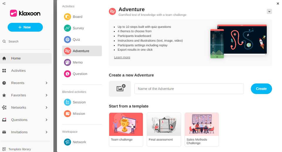 From your home page, click on ‘New’, then on ‘Adventure’.