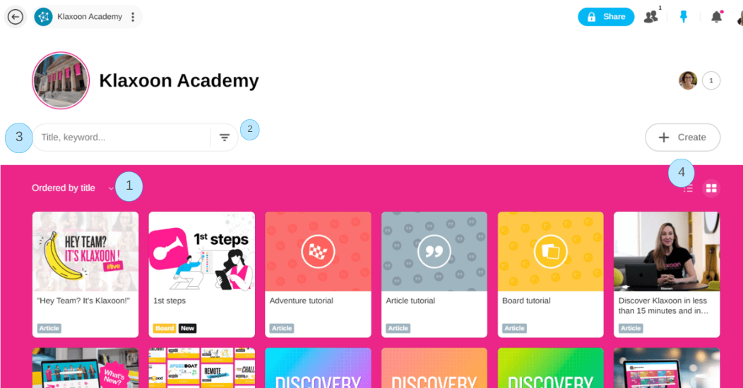 Organize activities by title, owner or update.