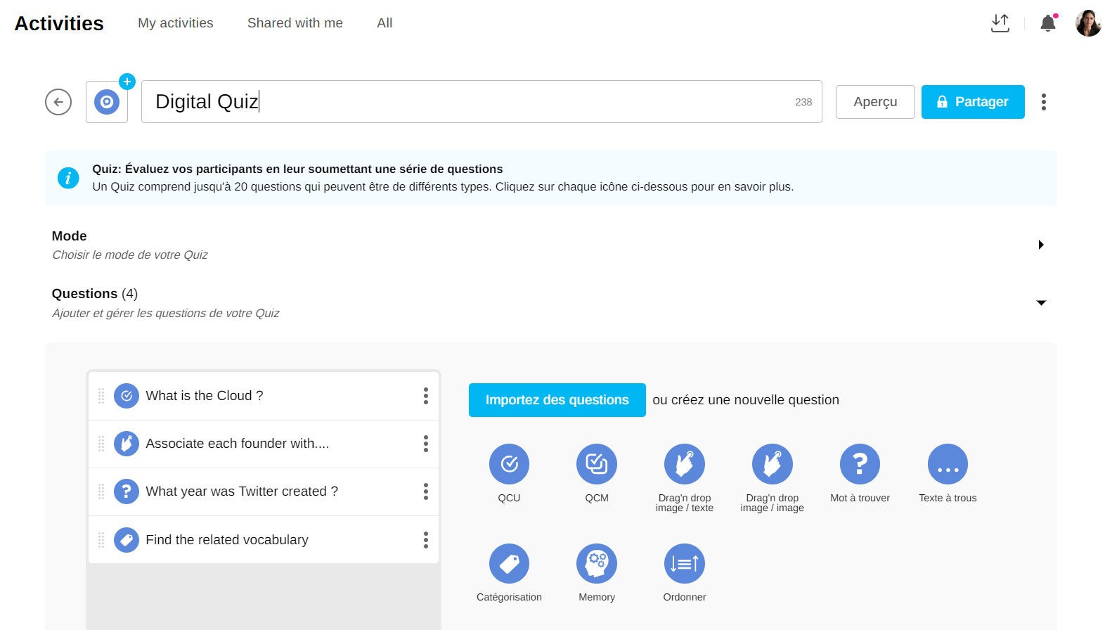 Free – Classic: After answering a question, participants move on to the next one, even if they have answered incorrectly. They can display corrections.