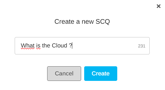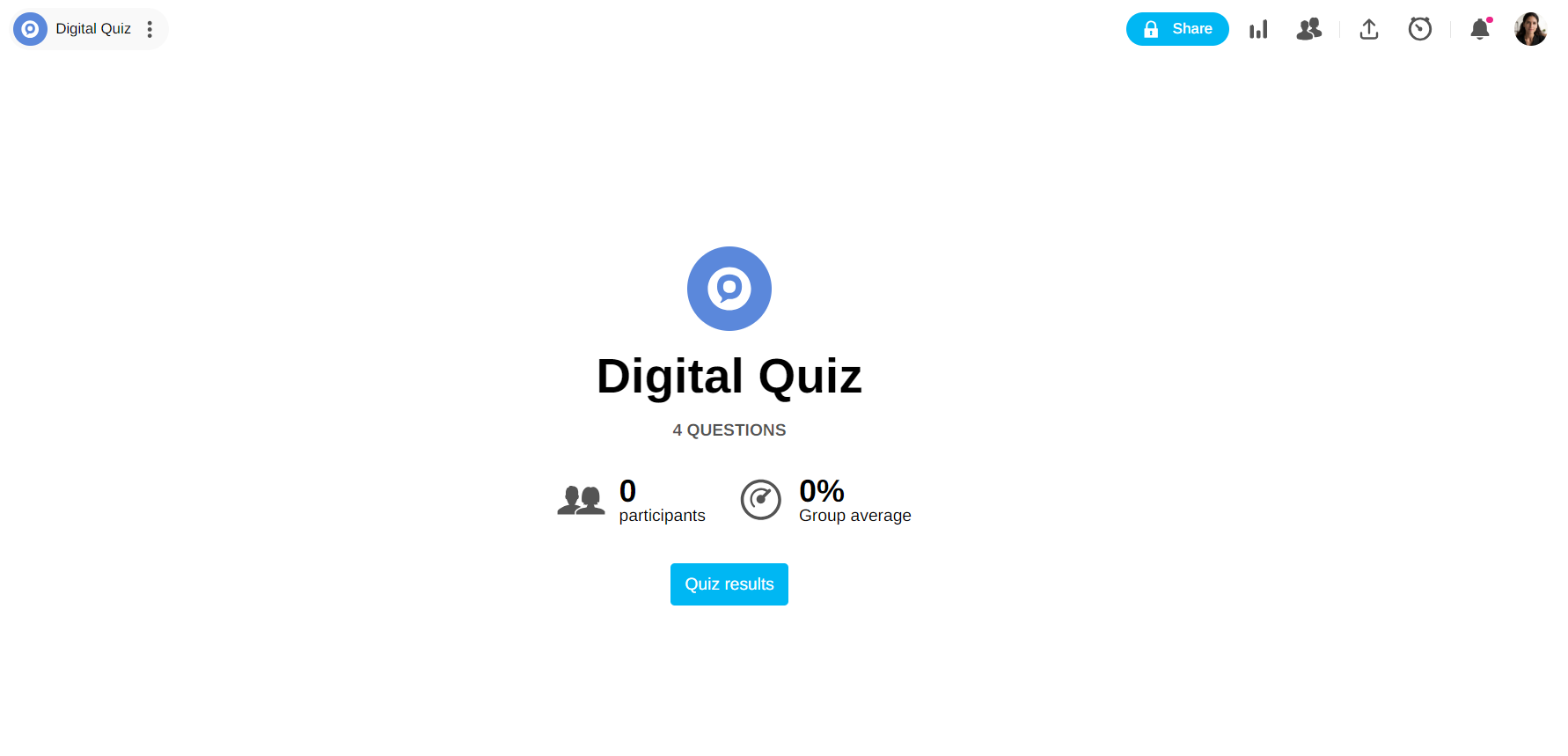 Enter the Quiz name (maximum 80 characters), add an image, and then click on CREATE.