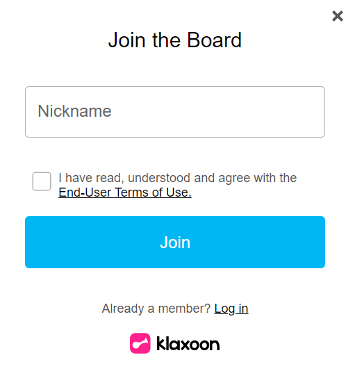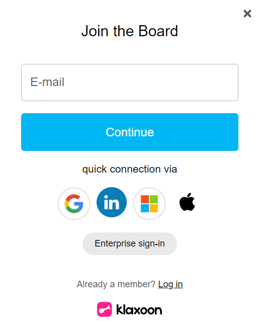 If you are logged in to your Klaxoon acount, simply click on CONTINUE