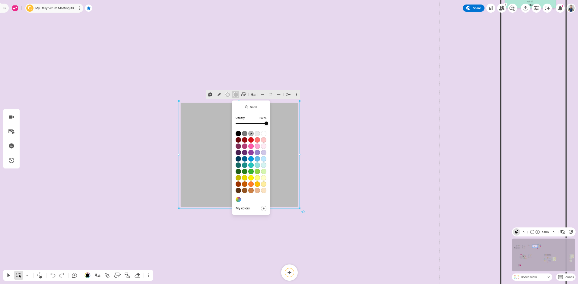Do you want to bring an extra touch of subtlety and creativity to your boards? Good news! It is possible to modulate the transparency of your shapes, connectors, drawings, sketches and SVG icons directly from the color menu.