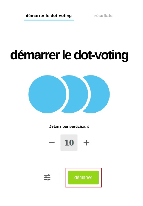 Pour voter, les participants cliquent sur une idée, puis sur ‘+’ pour ajouter des jetons ou sur ‘-’ pour en retirer.