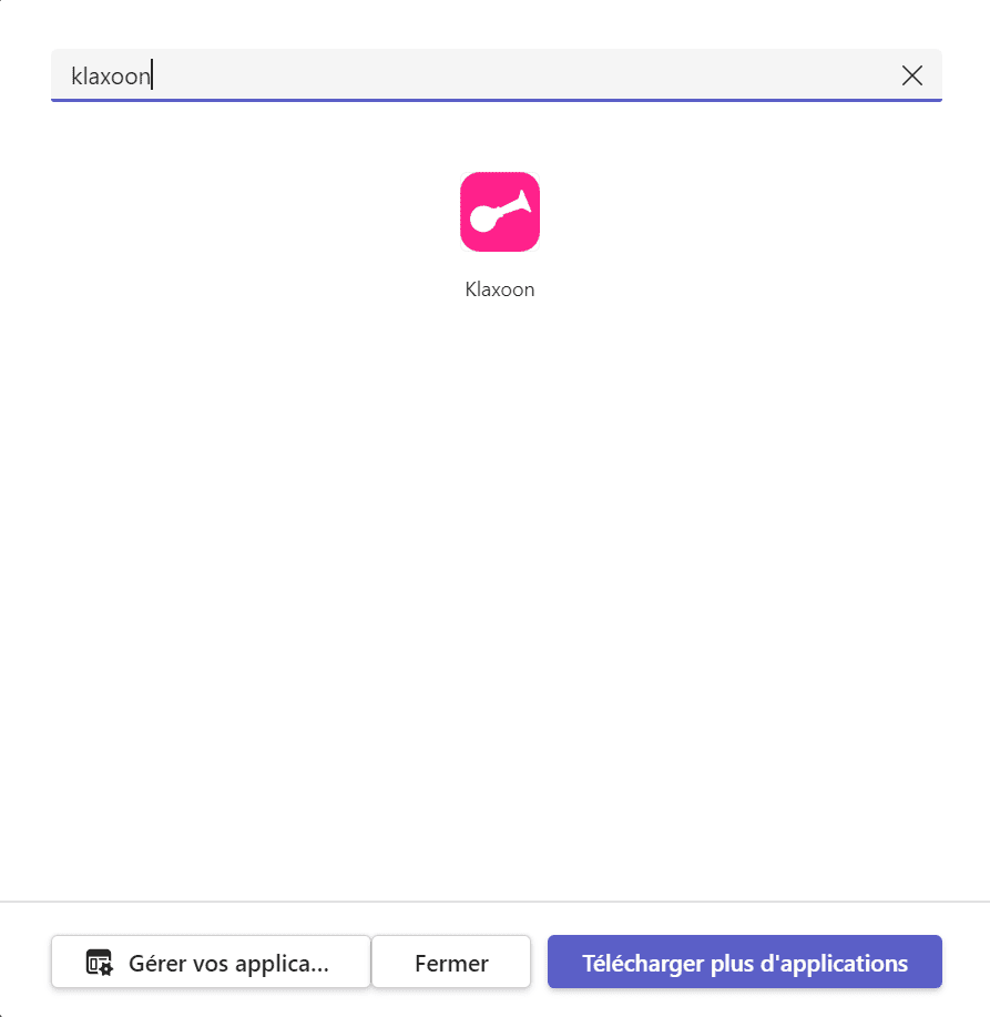 Puis, recherchez l'application Klaxoon.