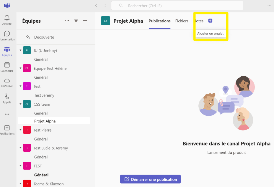 Une fois le canal crée, il s'ajoute à l'équipe souhaitée.
