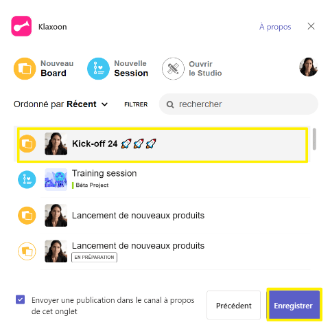 Une fois cette étape passée, vous accèderez au "sélecteur d'activité Klaxoon".