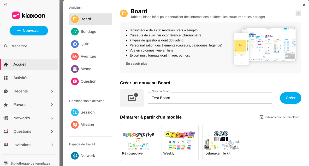 Créez votre activité grâce au bouton "Nouveau". Vous pouvez créer une activité vide ou à partir d'un de nos templates disponible.