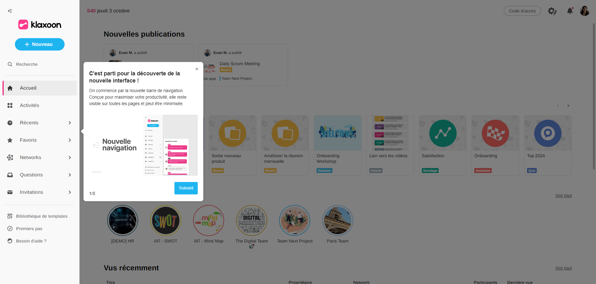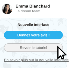 La visite guidée peut être rejouée à tout moment en cliquant sur votre photo de profil en haut à droite de l'interface, puis sur "Revoir le tutoriel".
