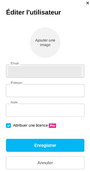 Dans la fenêtre d'édition, décochez l'option "Attribuer une licence Pro".