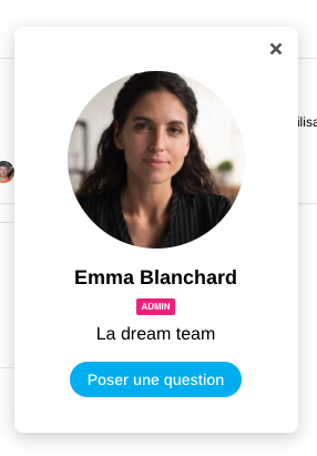 Vous avez une question à poser à l'un des administrateurs de notre équipe ? Cliquez sur leur photo pour accéder à leurs informations, puis cliquez sur « Poser une question ».