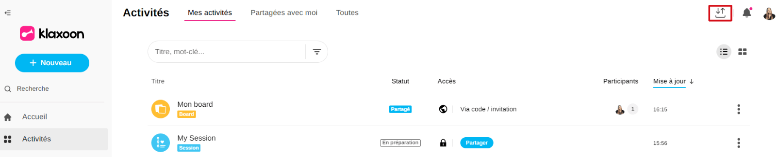 Depuis la page d'accueil, dans l'onglet "activités" :