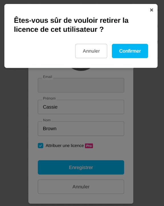 Pour retirer une licence Pro, cliquez sur "Editer" et décochez la mention "Attribuer une licence Pro".