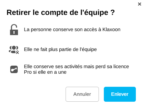 Lorsque vous cliquez sur "Retirer de l'équipe", une demande de confirmation apparaît.