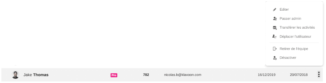 Repérez l'utilisateur que vous souhaitez nommer comme co-administrateur dans la liste. Cliquez sur le menu en bout de ligne (représenté par 3 petits points) puis cliquez sur "Passer admin"