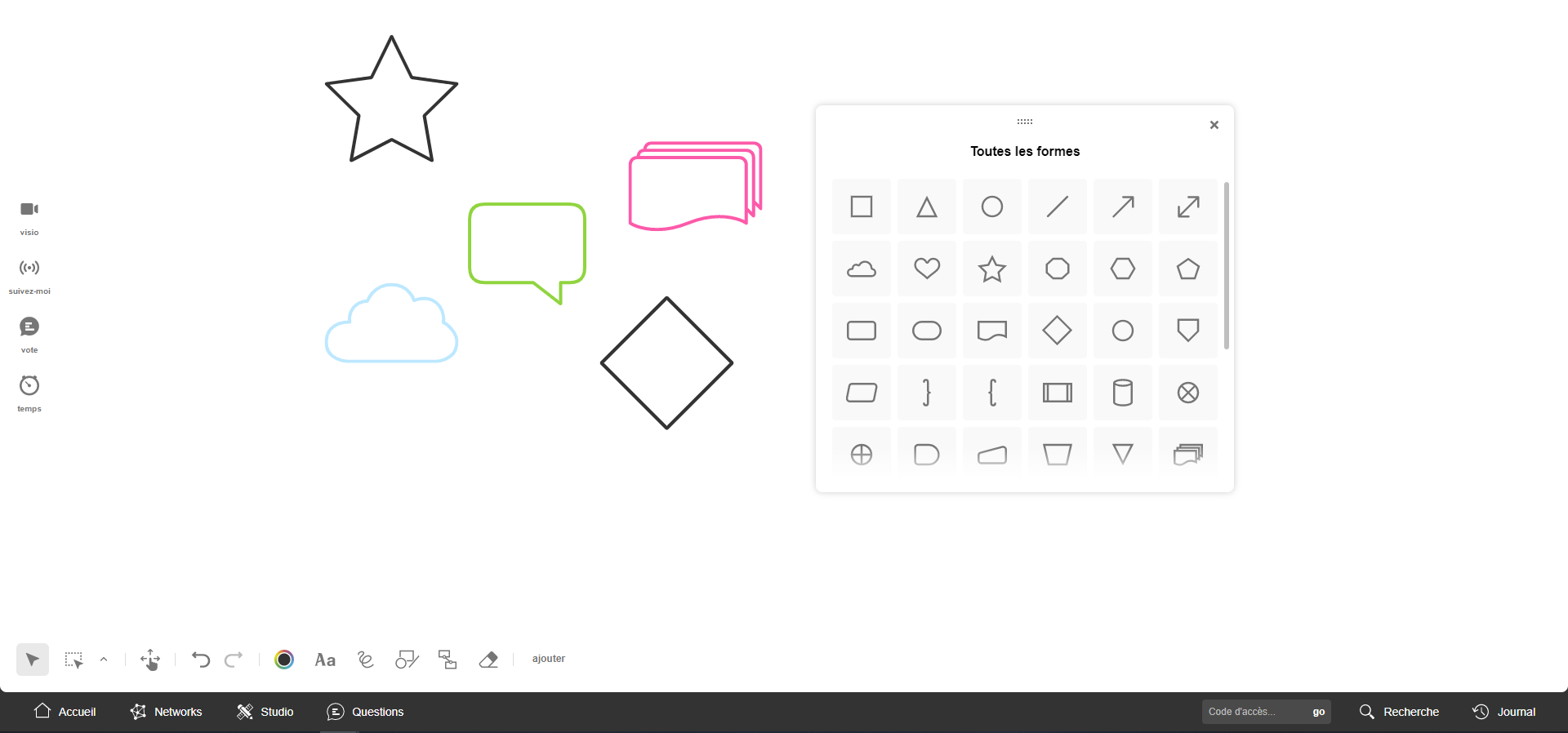 En cliquant, une nouvelle fenêtre dédiée s'ouvre. Elle peut être déplacée partout sur le Board. Pour connaitre le nom de la forme, survolez la fenêtre avec votre souris.