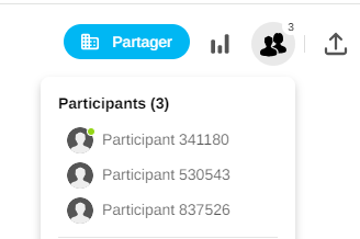 Vous pouvez également connecter vos participants en mode anonyme + pseudonyme, ce qui leur permet de choisir leur propre pseudonyme tout en conservant l'anonymat, le pseudo sera affiché à la place de "Participant XXX".