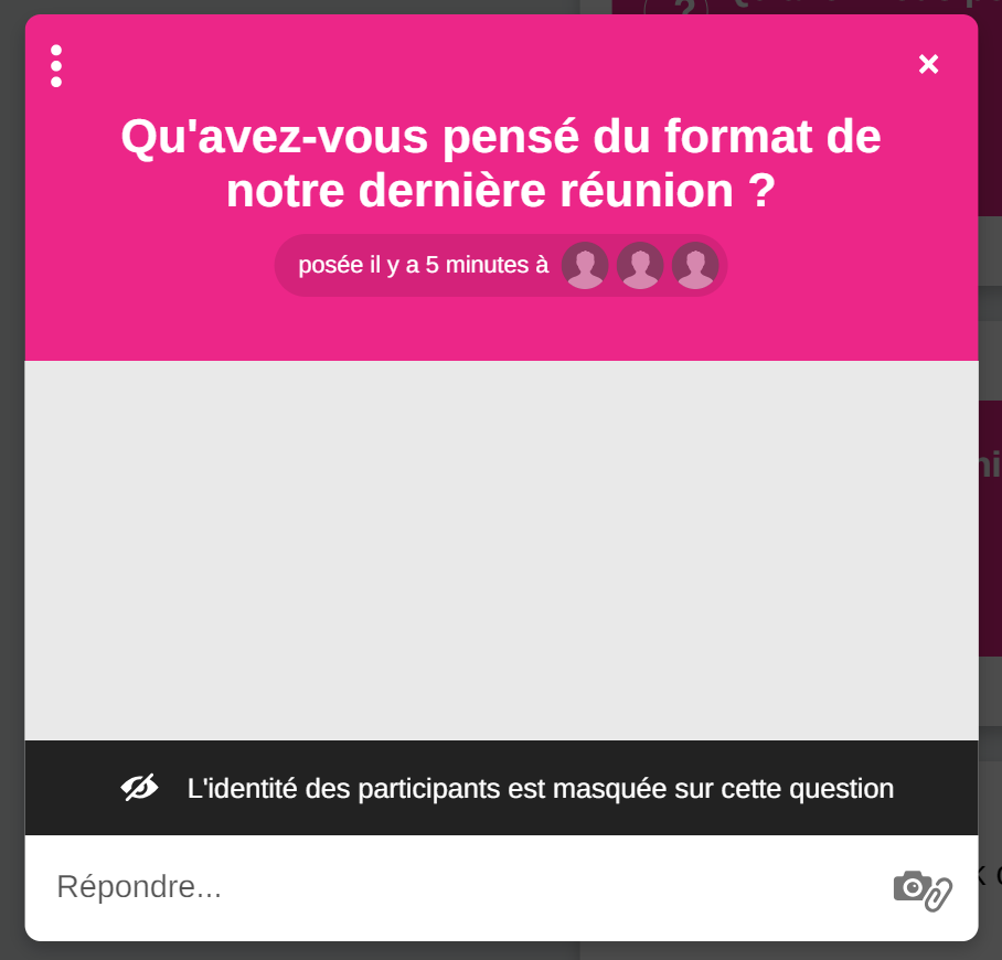 Pour activer cette option, lorsque vous créer votre Question, cliquez sur le bouton en bas de la pop up "Options" pour cocher "Masquer l'identité des participants" !