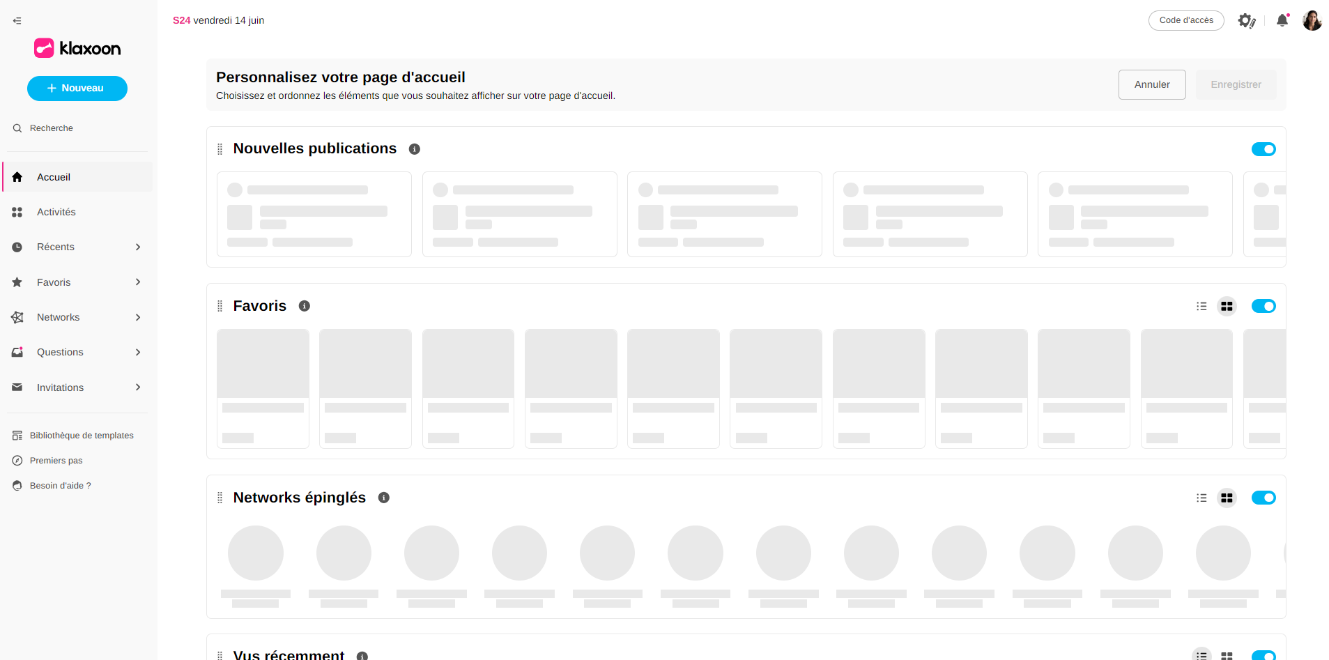 Ne manquez aucune publication des Networks dont vous êtes membre ! Le bloc "Nouvelles publications" a été ajouté à votre page d'accueil pour vous informer des activités Klaxoon qui viennent d'être publiées.