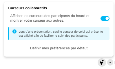 💡 À noter : quand vous désactivez l'affichage du curseur les participants ne le voient plus, mais vous ne pouvez également pas voir celle des autres.