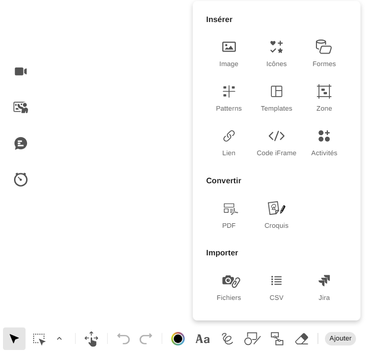 Depuis votre Board, cliquez sur "Ajouter" dans la barre d'outils en bas à gauche
