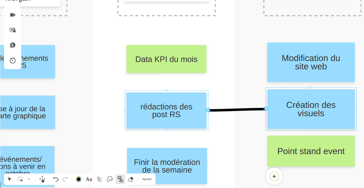 Pour relier deux éléments entre eux (idée, forme,...), il vous suffira de sélectionner l'outil de lien dans la barre d'outil (en bas à gauche), symbolisé par .