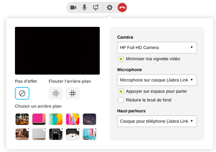 Accédez aux paramètres audio en cliquant sur l’icône ⚙️ dans l’interface Live