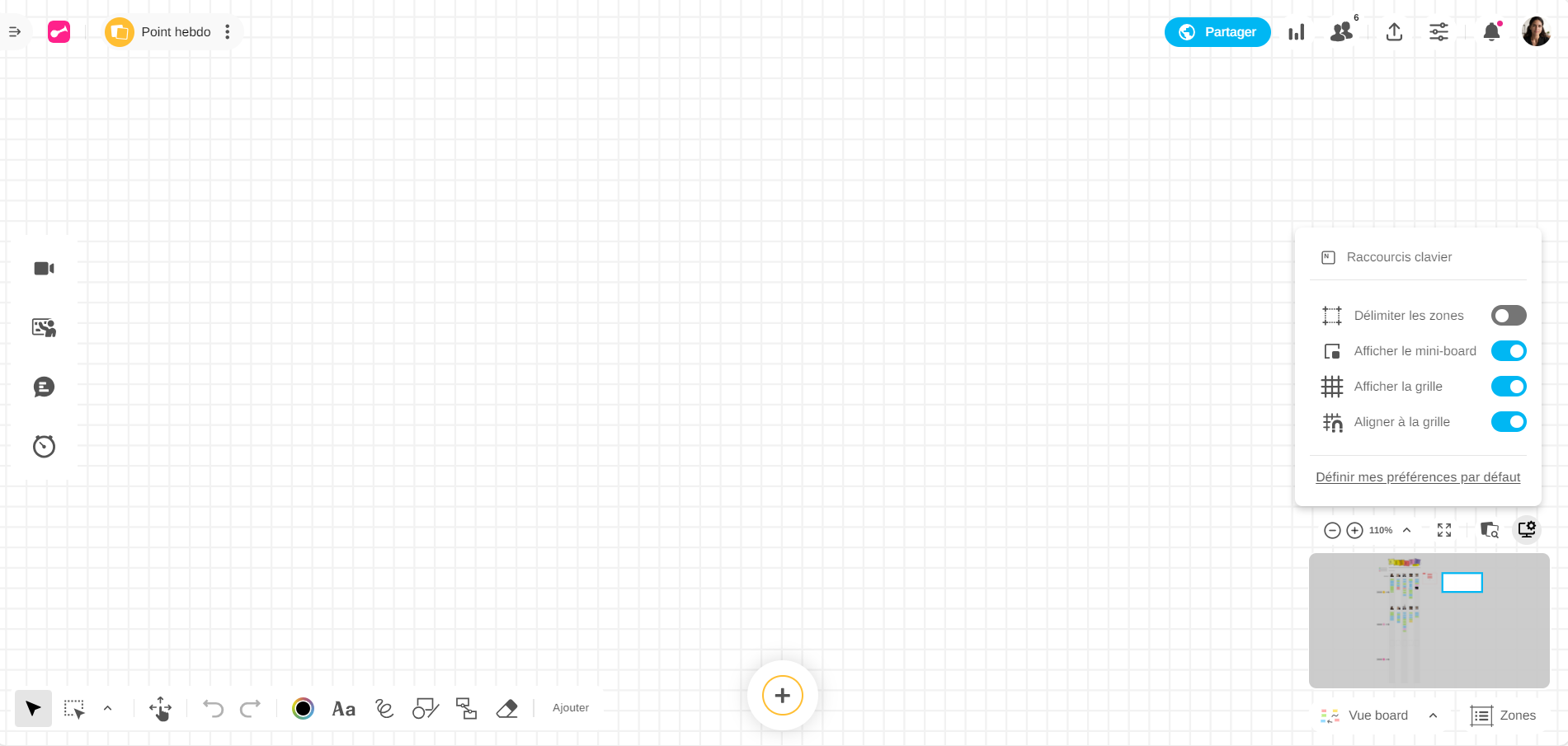 Dans un Board, les idées sont affichées sur un fond blanc. Cependant, vous pouvez activer ou désactiver l'affichage d'une grille.