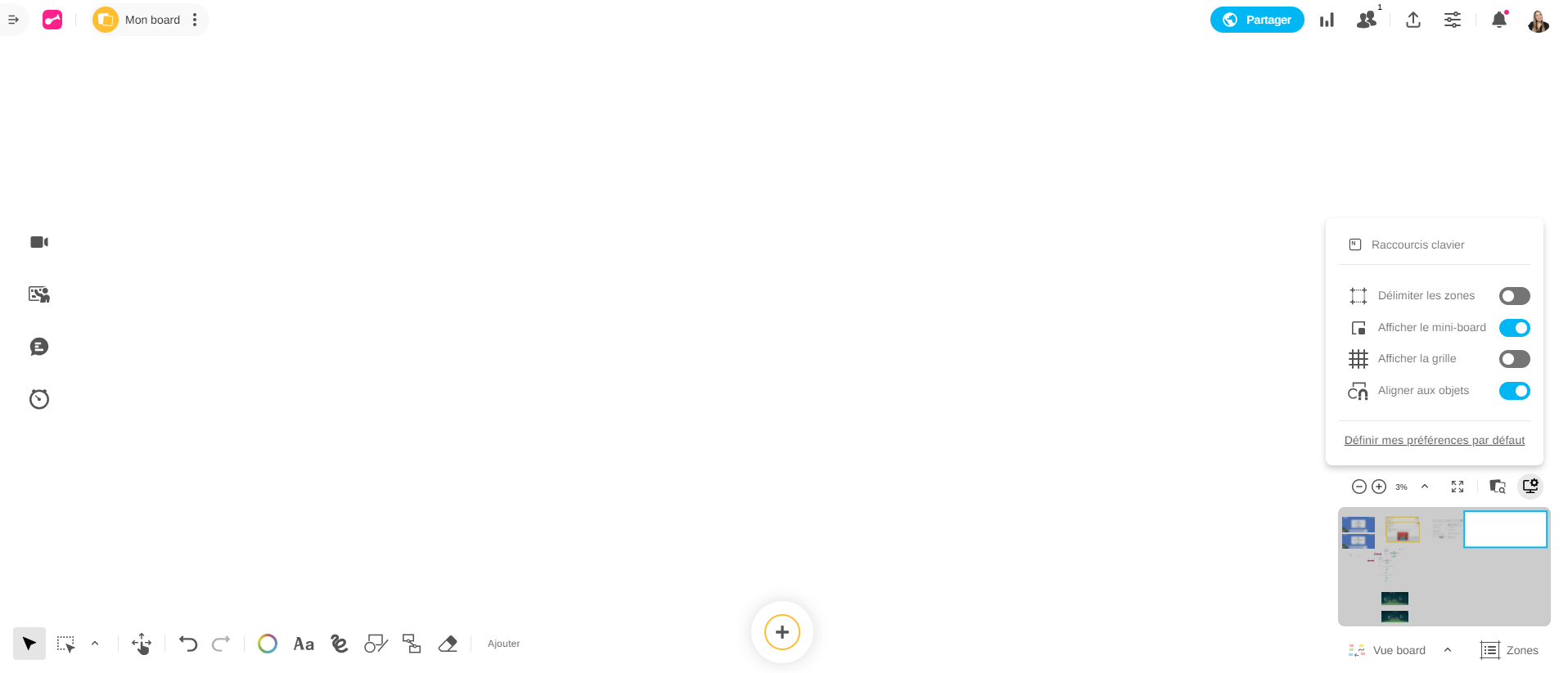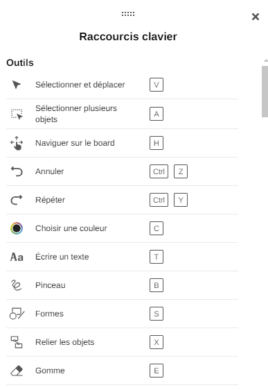 Dans un Board, vous pouvez utiliser des raccourcis clavier pour rendre l'utilisation des fonctionnalités du Board plus fluide.
