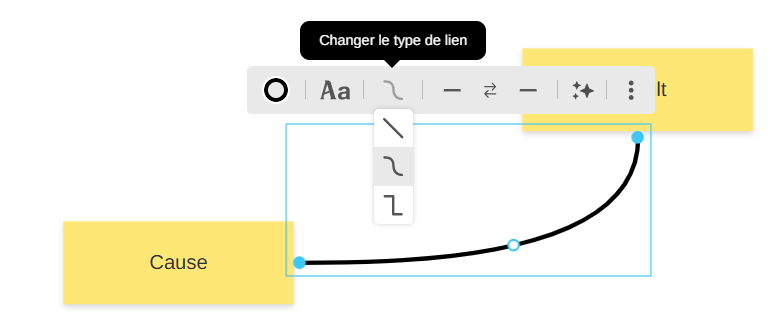 Type de lien : Vous pouvez choisir entre des liens simples (lignes droites ou courbes) ou des liens avec flèches pour indiquer une direction ou une relation de cause à effet