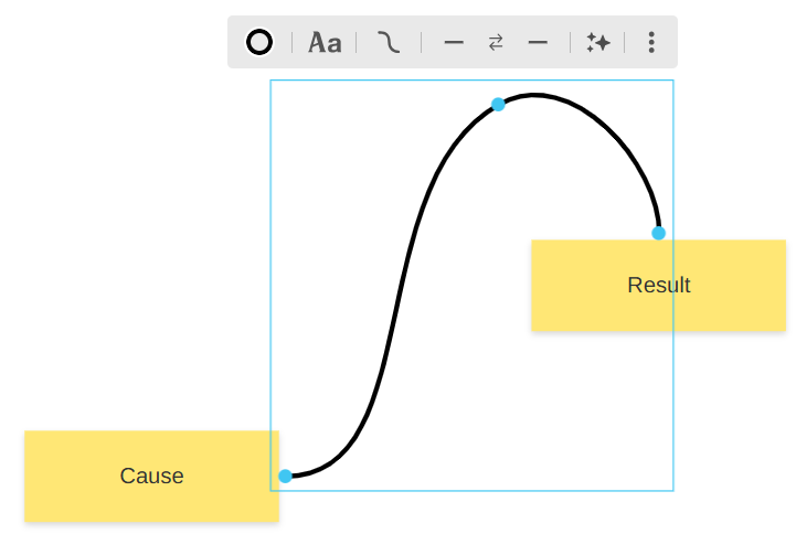 Déformer : Lorsque vous sélectionnez un connecteur, des points d'ancrage apparaissent. Vous pouvez les faire glisser pour ajuster la courbure ou la longueur du lien, et ainsi l'adapter parfaitement à votre agencement d'idées.