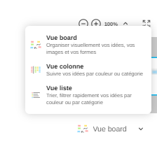 Vous y trouverez également des options d'affichage et de regroupement des idées (voir Vue en colonnes).