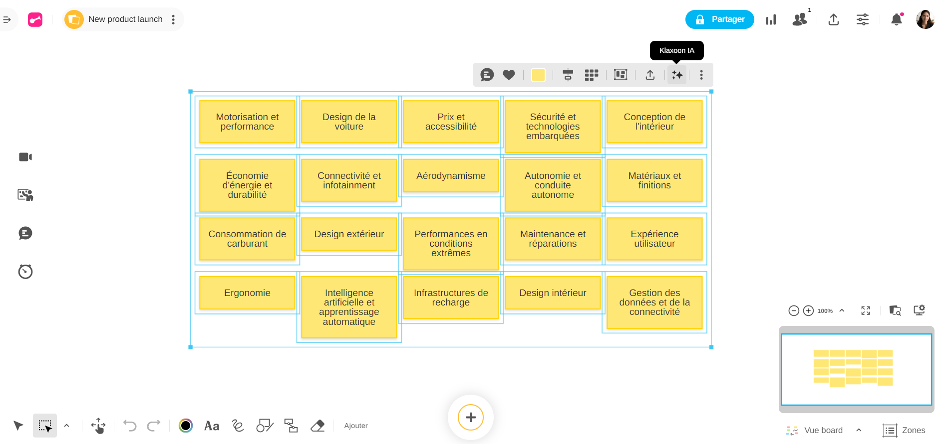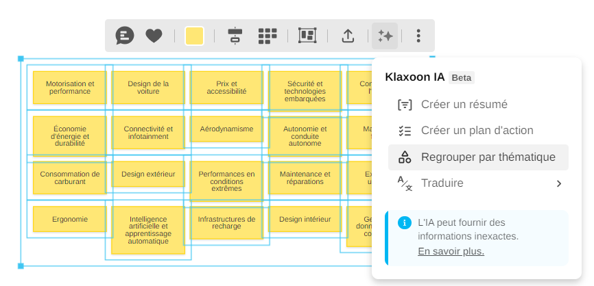 Depuis votre Board, sélectionner des idées, puis cliquer sur l'icône IA