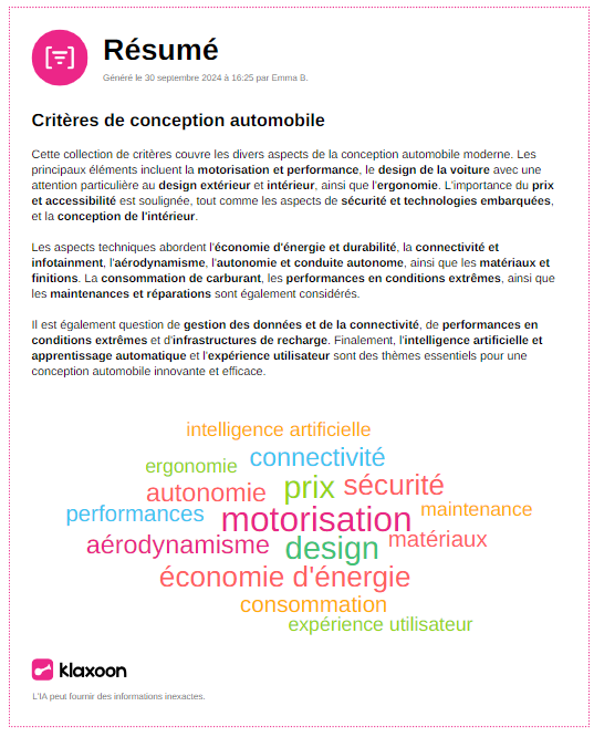 Un résumé est généré en quelques secondes. Ce résumé est accompagné d'un nuage de mots mettant en avant les thèmes abordés.