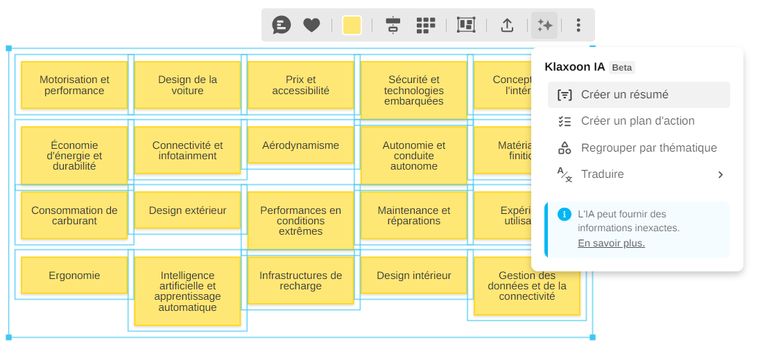 Depuis votre Board, sélectionner des idées, puis cliquer sur l'icône IA
