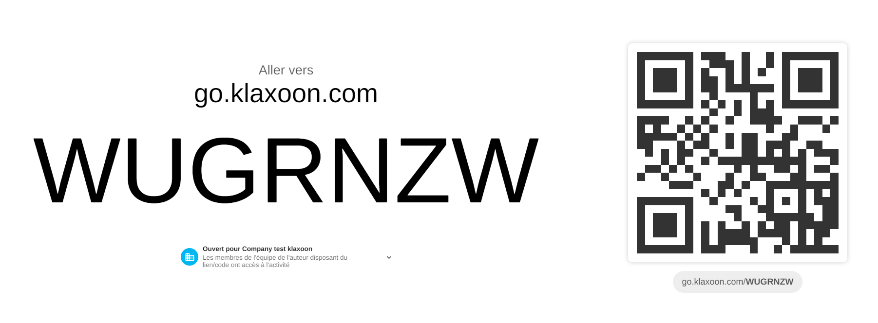 En tant qu'animateur, lorsque vous partagez une activité, le lien proposé sera de la forme https://go.klaxoon.com/join/xxxx