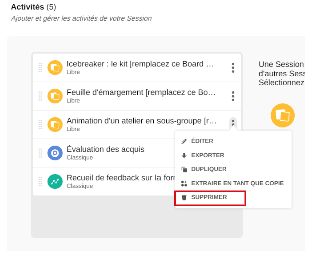 Vous avez lancé une activité dans votre Session, mais vous souhaitez la retirer ? En quelques clics, vous pouvez supprimer une activité animée de votre Session pour garder uniquement celles qui vous sont utiles.