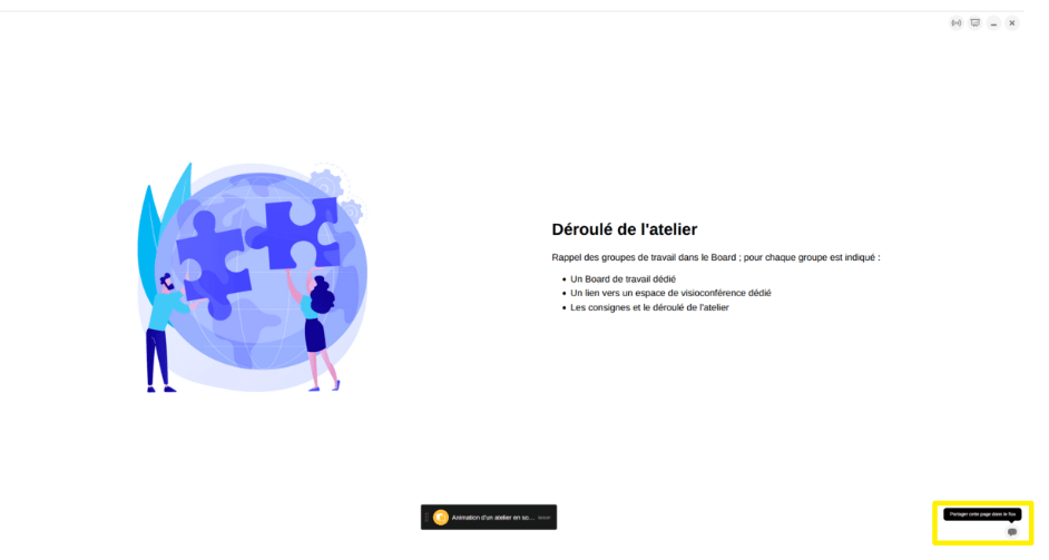 Partager une page de votre présentation dans le flux de la Session permet d'offrir un accès direct et permanent à l'information pour tous les participants. Découvrez comment cette fonctionnalité enrichit l'expérience collaborative.
