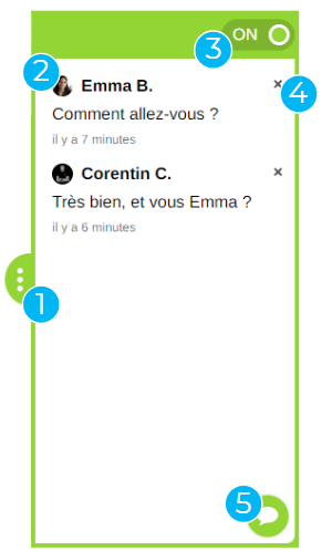 A droite de l'écran de l'animateur, cliquez sur le demi-cercle vert avec les 3 points blancs.