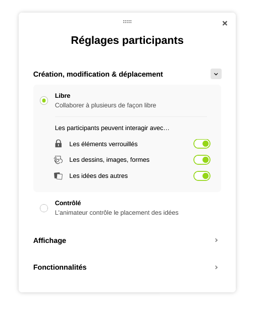 Si vous l’avez autorisé dans le paramètre précédent, ils pourront également choisir d’agir sur les dessins, les images, les formes et/ou les idées des autres.
