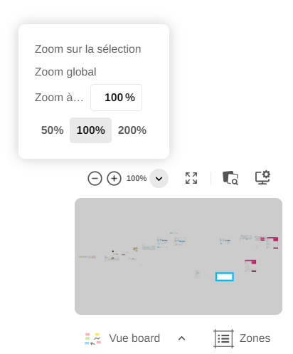 Le zoom est une fonctionnalité essentielle pour explorer et interagir plus précisément avec les éléments de votre Board Klaxoon.