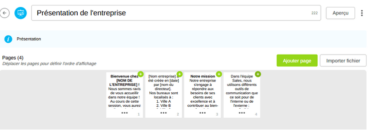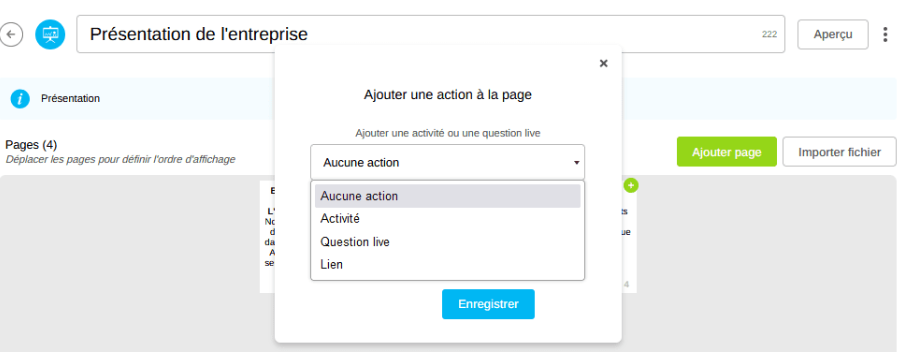Lorsque vous créez une session, les pages de présentation sont la première chose que vos participants voient. Pour les rendre plus interactives et dynamiques, vous pouvez y ajouter différentes actions.