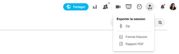 Pour récupérer toutes les données de votre Session, il vous suffira d'exporter le son Rapport une fois celle-ci lancée et partagée.