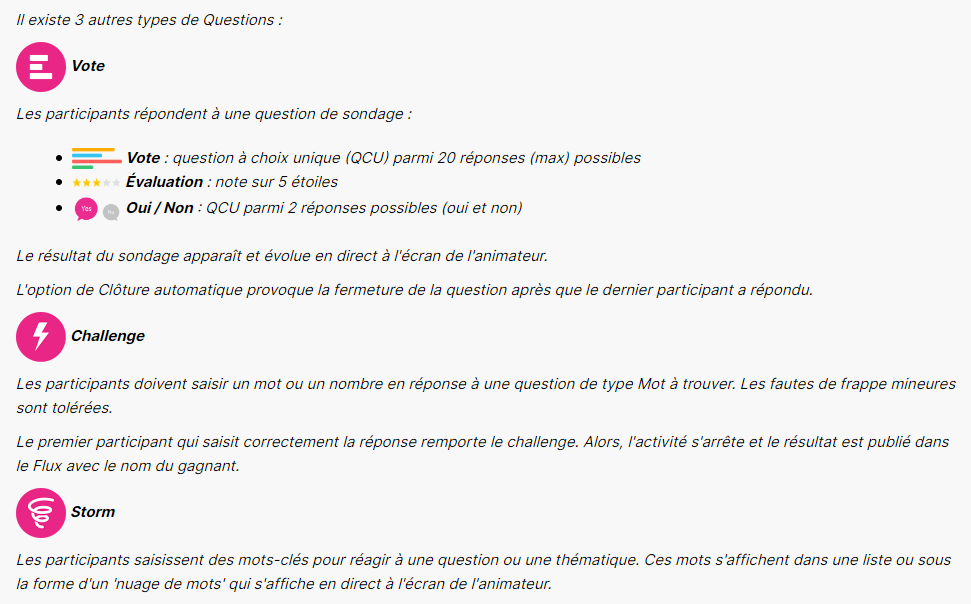 3 - Sélectionnez un type de question ;