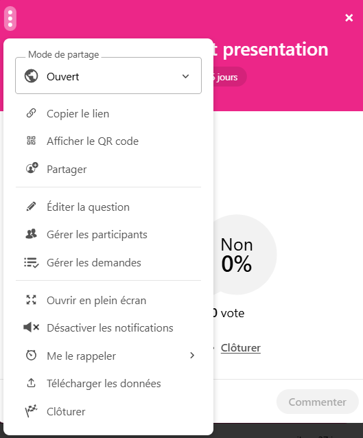 Il est également possible de partager le code d'accès de la question une fois celle-ci lancée.