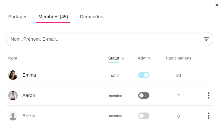 Saisissez les adresses email des personnes que vous souhaitez inviter et cliquez sur AJOUTER