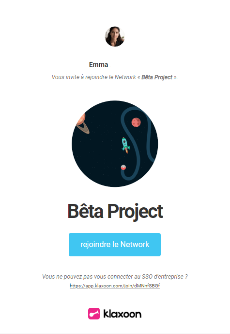 Un message est envoyé aux membres pour les inviter à rejoindre le Network: