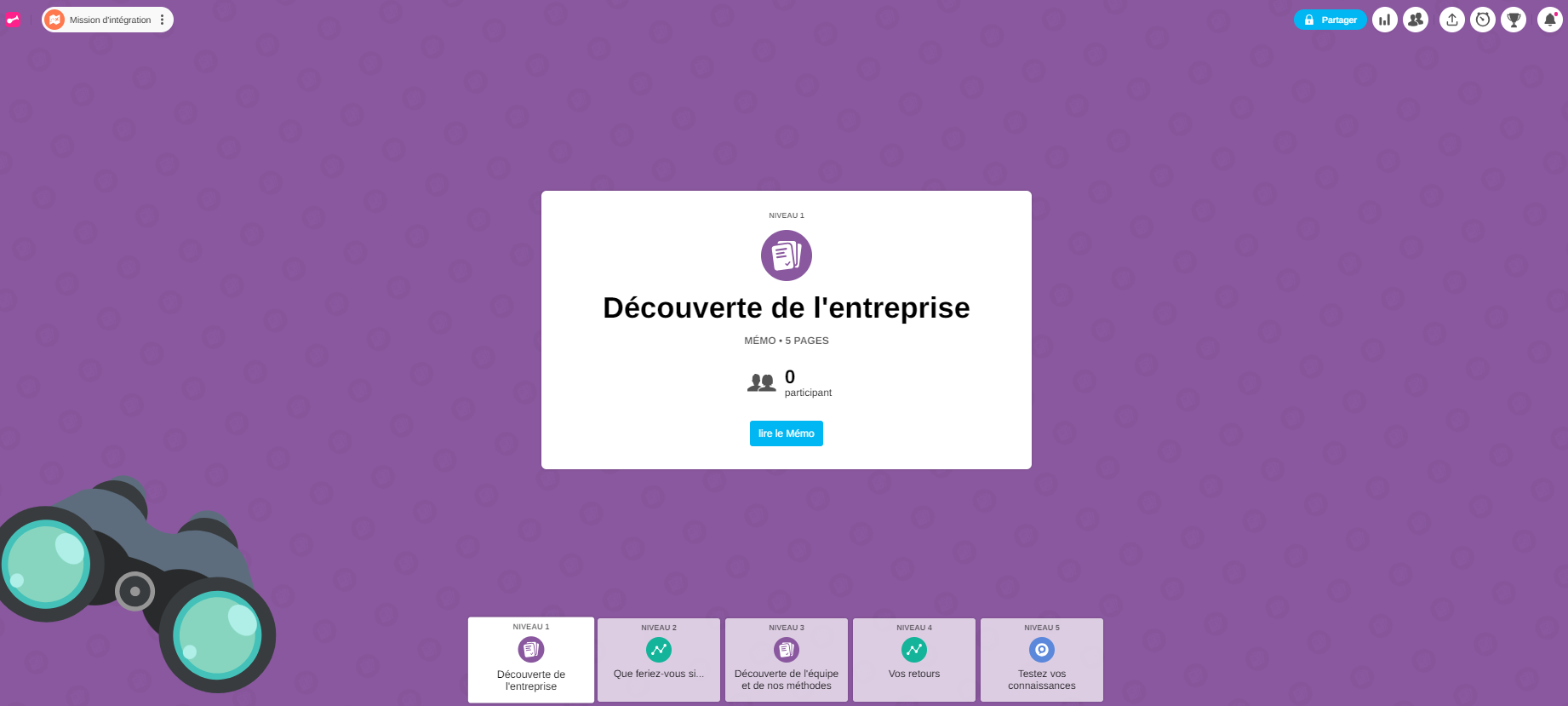 Rejouer : les participants peuvent recommencer une étape terminée (et améliorer leur score au Quiz si le Leaderboard est activé).