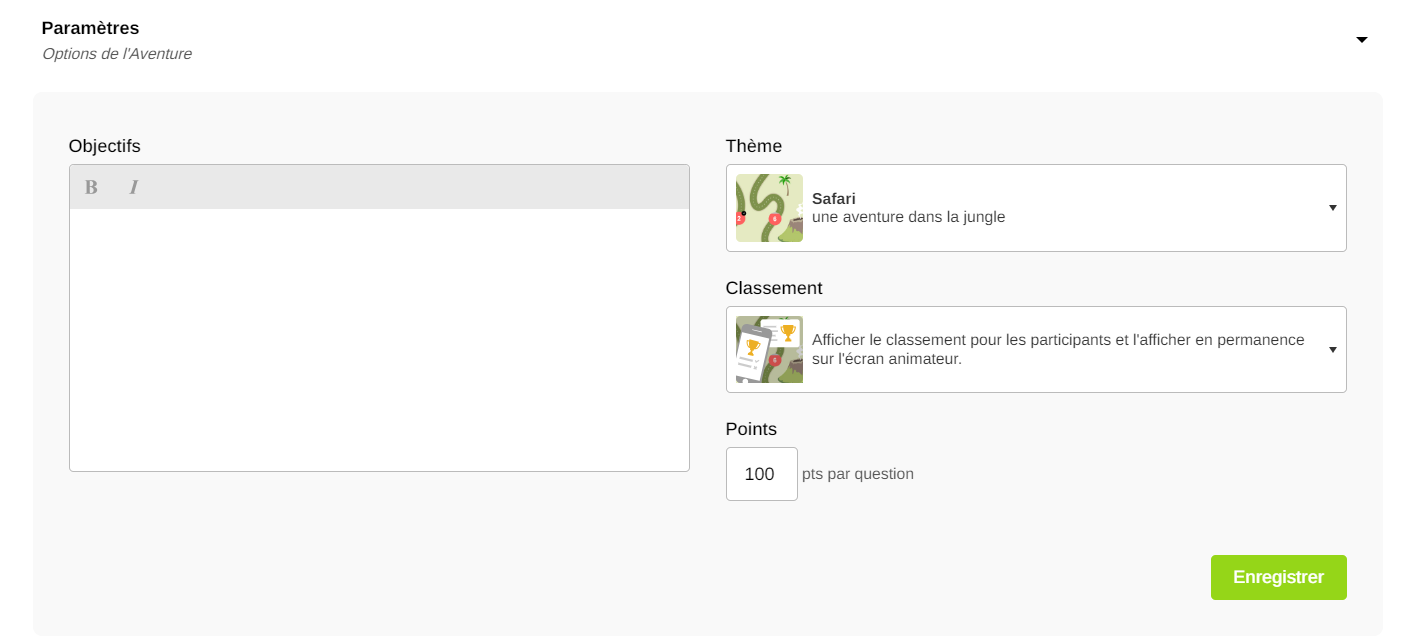 Allez dans les paramètres, modifiez le nombre de points par question et enregistrez.