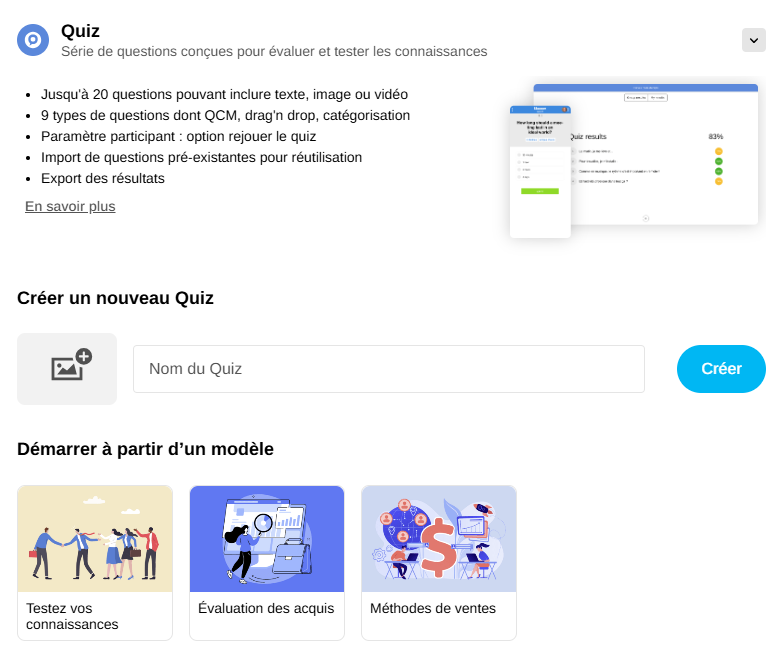 Le Quiz est l'outil idéal pour transformer vos évaluations en moments interactifs et enrichissants.