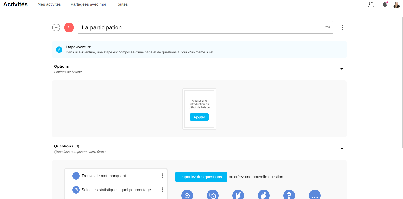 Objectifs : saisissez un descriptif qui sera indiqué aux participants au début de l'activité